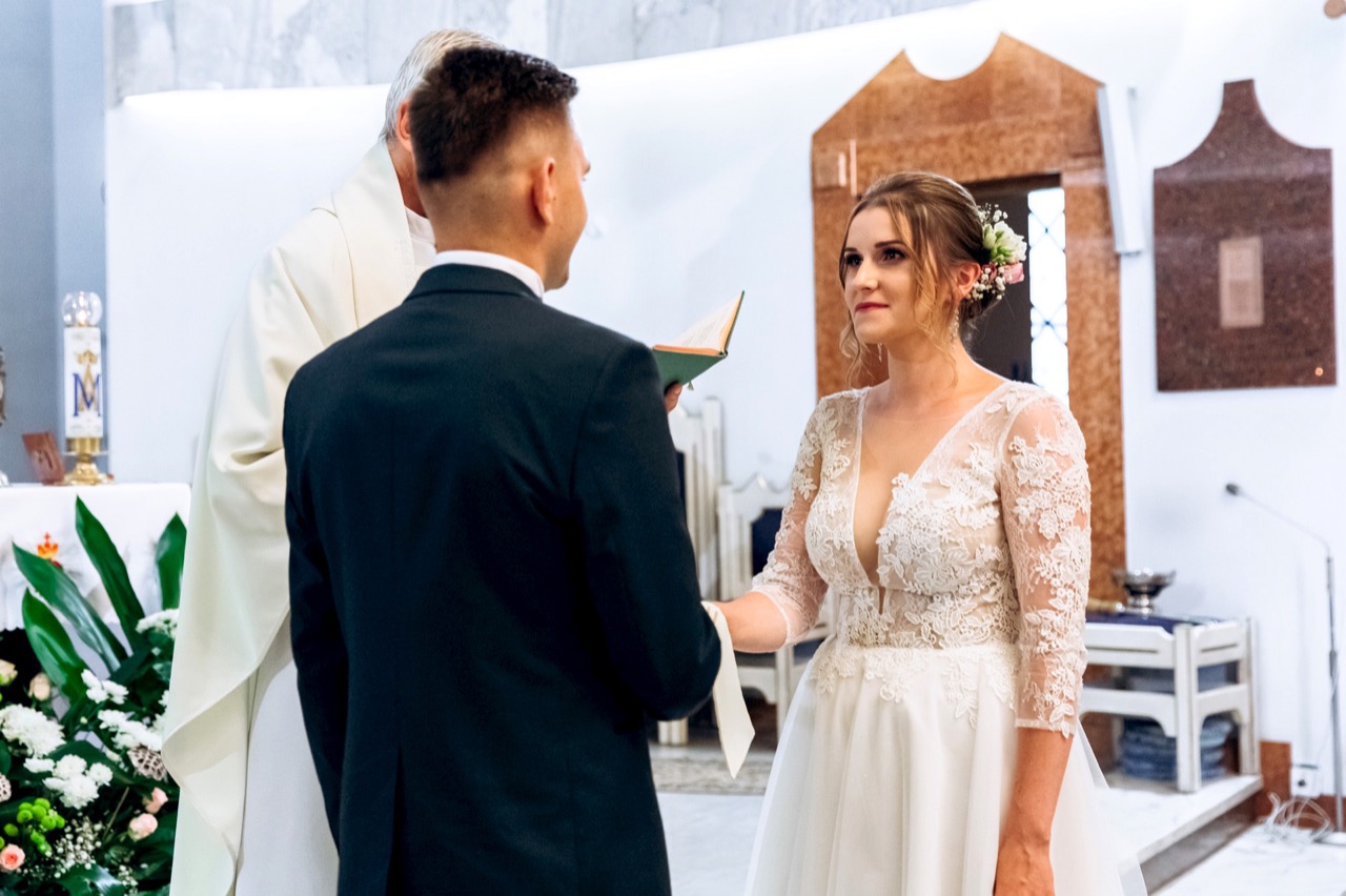 Magda i Dawid zjawili się u mnie na miesiąc przed swoim ślubem. Energia, jaka z nich wtedy emanowała, towarzyszyła im również w dniu ślubu. O stresie nikt nawet nie pomyślał. Pewni swej miłości zostali mężem i żoną. Wesele Magdy i Dawida zapadnie mi na długo w pamięci. Ze względu na to, że chociaż grono gości było okrojone to zabawa i atmosfera była po prostu wspaniała. Najbliższa rodzina i przyjaciele – radość, łzy szczęścia, uśmiech, życzliwość, miłość, bliskość, szczerość. Czy trzeba czegoś więcej ? Odpowiedzcie sobie sami. A ja między czasie gorąco zapraszam do obejrzenia całej publikacji – sesja plenerowa w zamku i jeszcze w kilku miejscach daje obraz ich miłości….