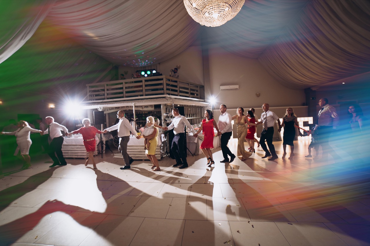 Po uroczystości zaślubin przejechaliśmy do Zajazdu nad Łęgiem, gdzie odbyło się huczne wesele z niesamowitą dawką emocji i szaleństwa do białego rana. Na ten dzień przypadało również jeszcze inne wydarzenie, a było nim mecz Reprezentacji Polski w siatkówce. Para Młoda pomyślała również o swoich gościach – kibicach i w momencie, gdy na sali balowej jedni tańczyli do ulubionych hitów granych przez Dj Maciej Osuch, to inni w przeżywali sportowe emocje! Mecz Polska – Brazylia zakończył się zwycięstwem Polski, co jeszcze bardziej podkręciło pozytywną już atmosferę tego wesela!